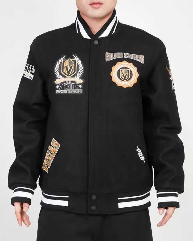 NHL VEGAS GOLDEN KNIGHTS CREST EMBLEM MEN’S WOOL VARSITY JACKET (BLACK)