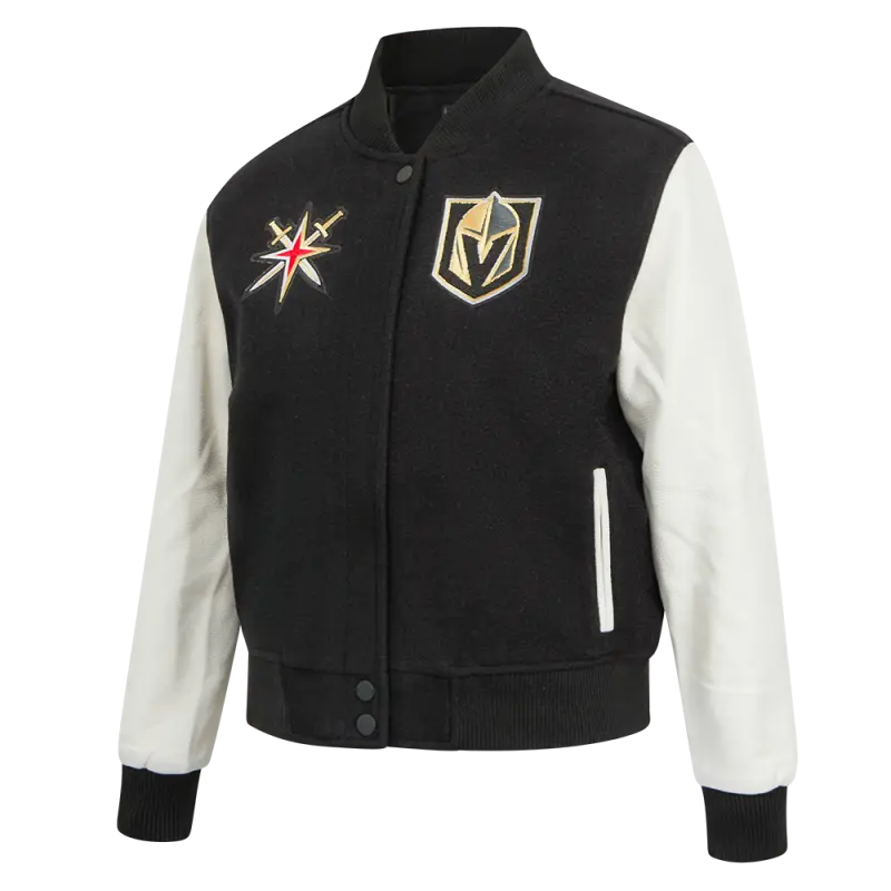 NHL VEGAS GOLDEN KNIGHTS CLASSIC WOMEN’S WOOL VARSITY JACKET (BLACK\/WHITE)