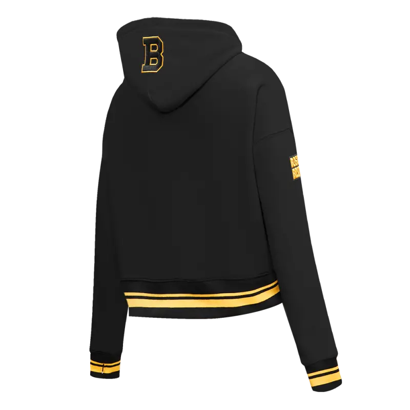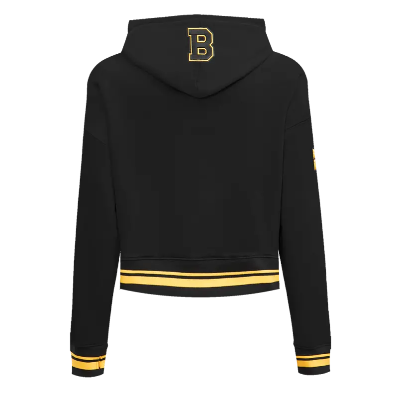 NHL BOSTON BRUINS RETRO CLASSIC WOMEN’S RIB CROPPED PULLOVER HOODIE (BLACK\/YELLOW)