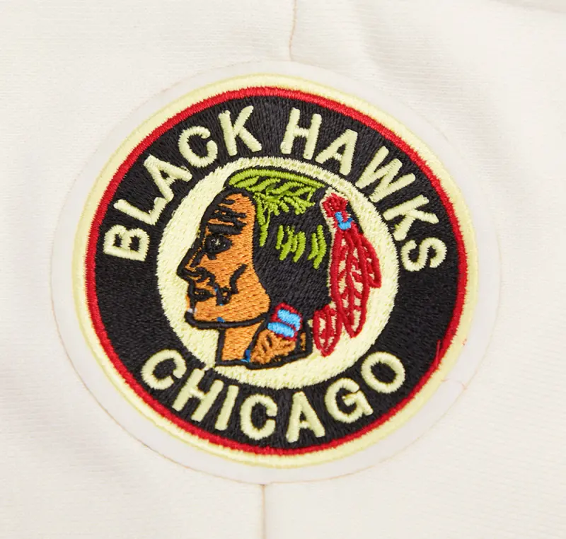 NHL CHICAGO BLACKHAWKS RETRO CLASSIC WOMEN’S RIB CROPPED PULLOVER HOODIE (EGGSHELL\/ BLACK)
