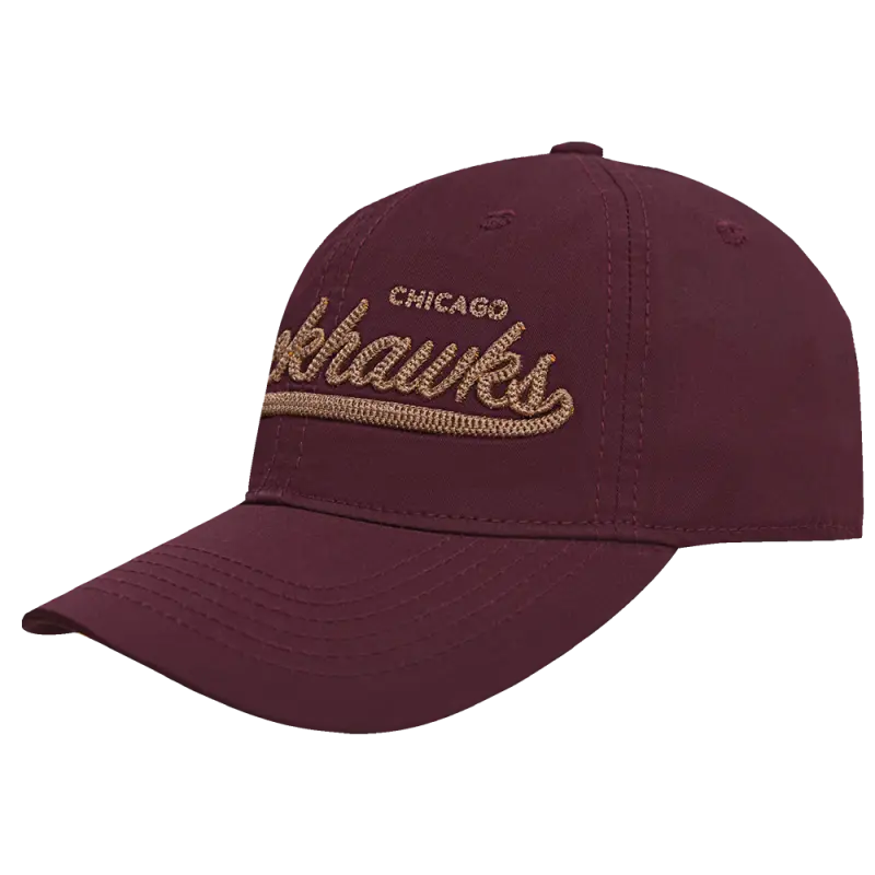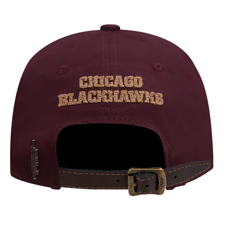 NHL CHICAGO BLACKHAWKS TAIL SWEEP STRAPBACK HAT (WINE)