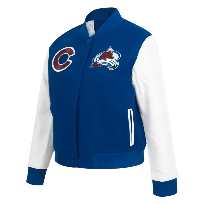 NHL COLORADO AVALANCHE CLASSIC WOMEN’S WOOL VARSITY JACKCET (DODGER BLUE\/WHITE)