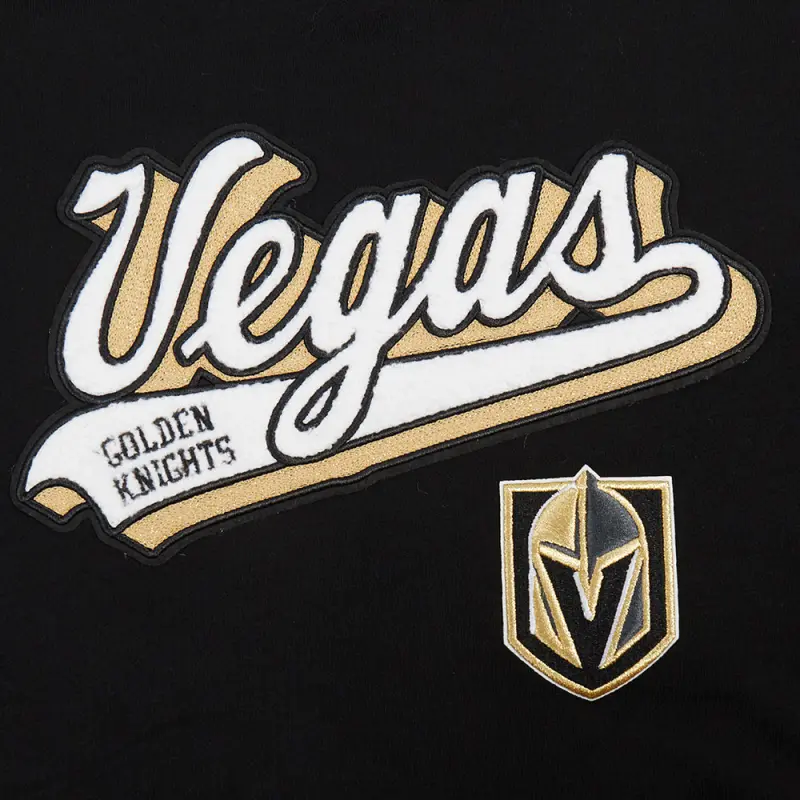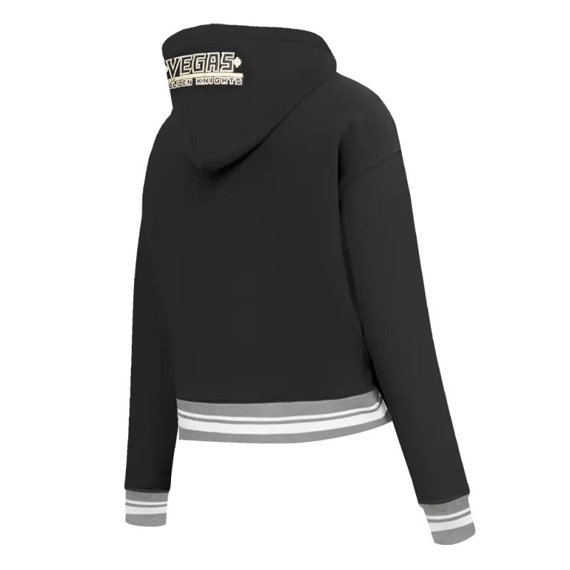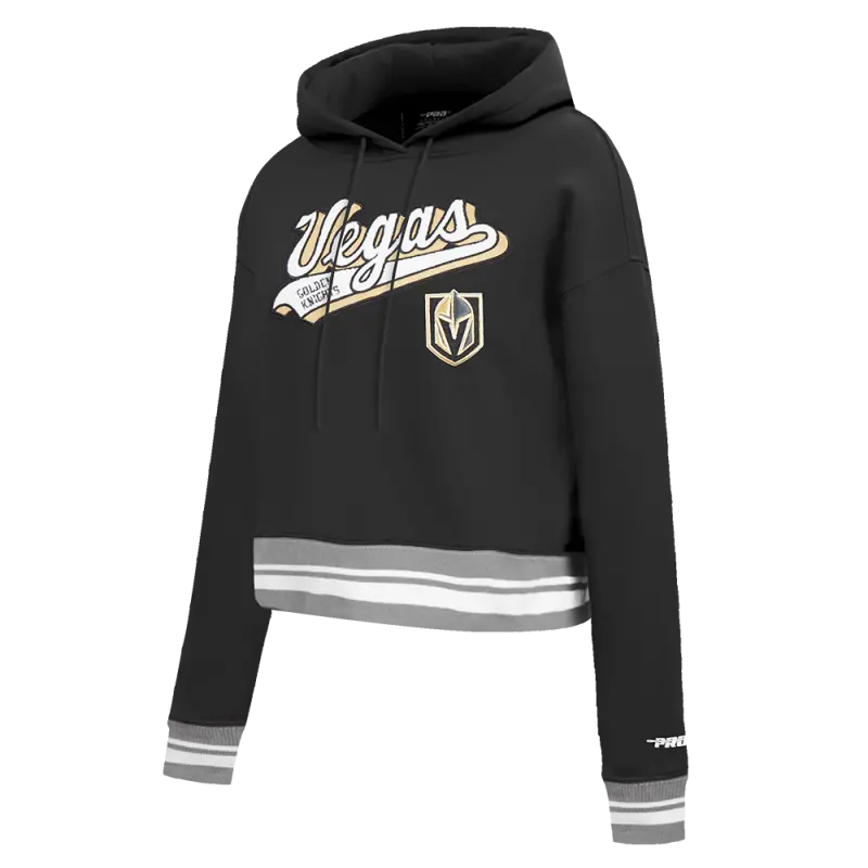 NHL VEGAS GOLDEN KNIGHTS SCRIPT TAIL WOMEN’S RIB FLEECE CROPPED PULLOVER HOODIE (BLACK\/GRAY)